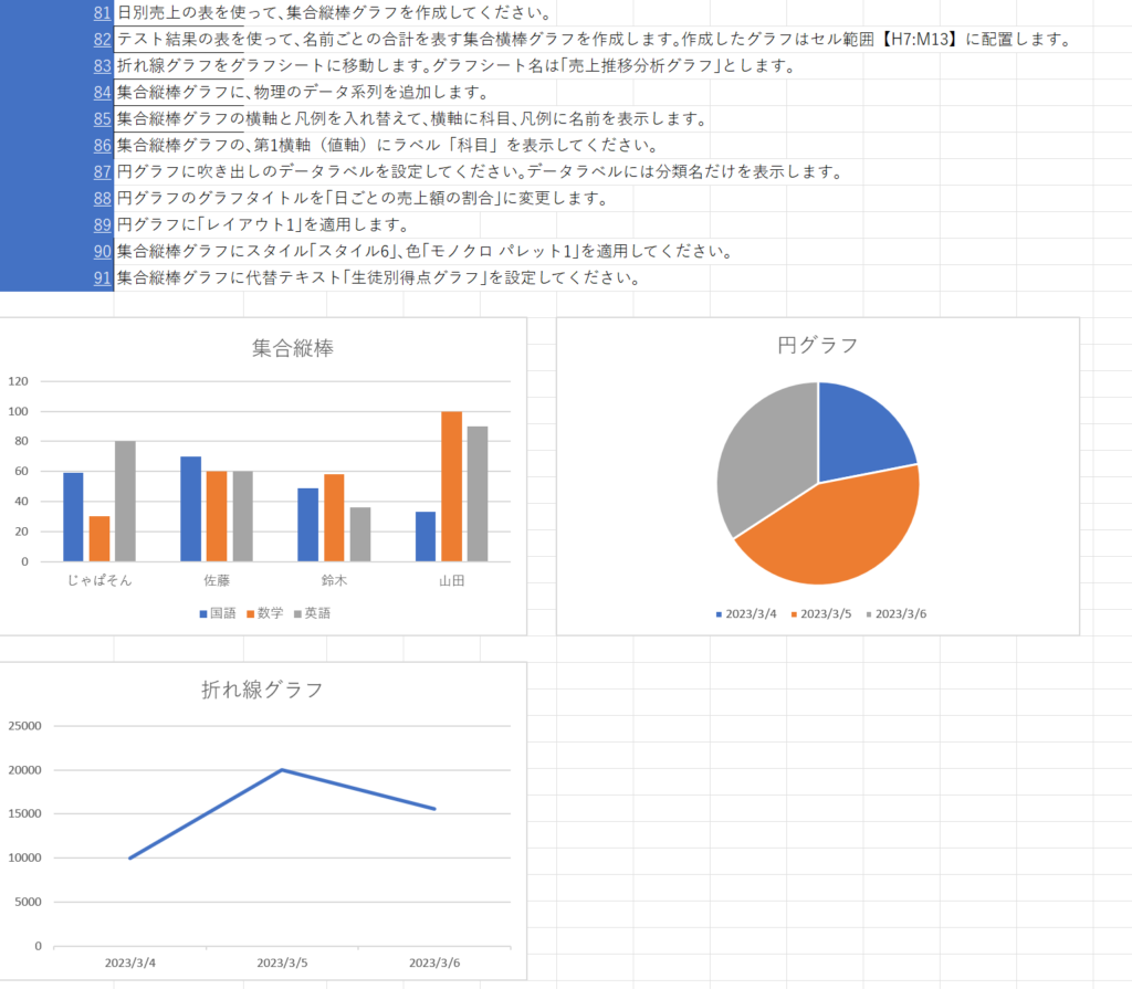 Excelファイル内の問題文を使って、自力で操作してみましょう。