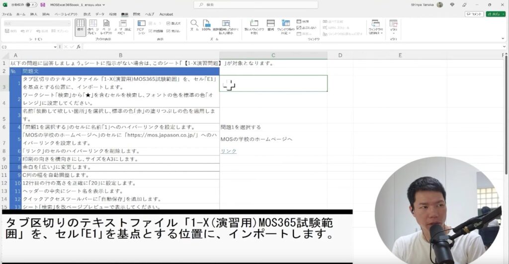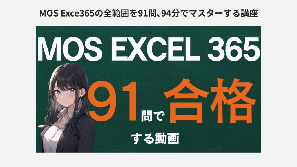 こちらの動画で、先日MOS Excel365(一般)を合格できました。