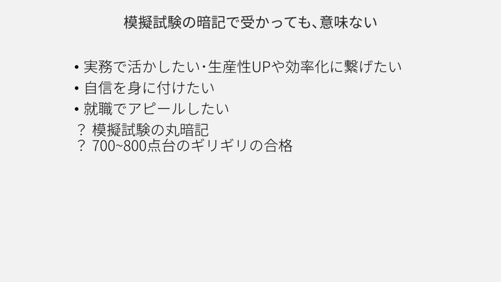 「模擬試験の丸暗記では、これらは実現できない」ってことが、私が一番お伝えしたいことです 。