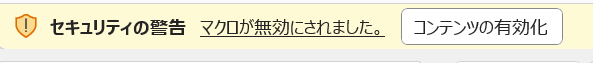 上記の許可実行後にファイルを開くと、以下の警告が表示されます。